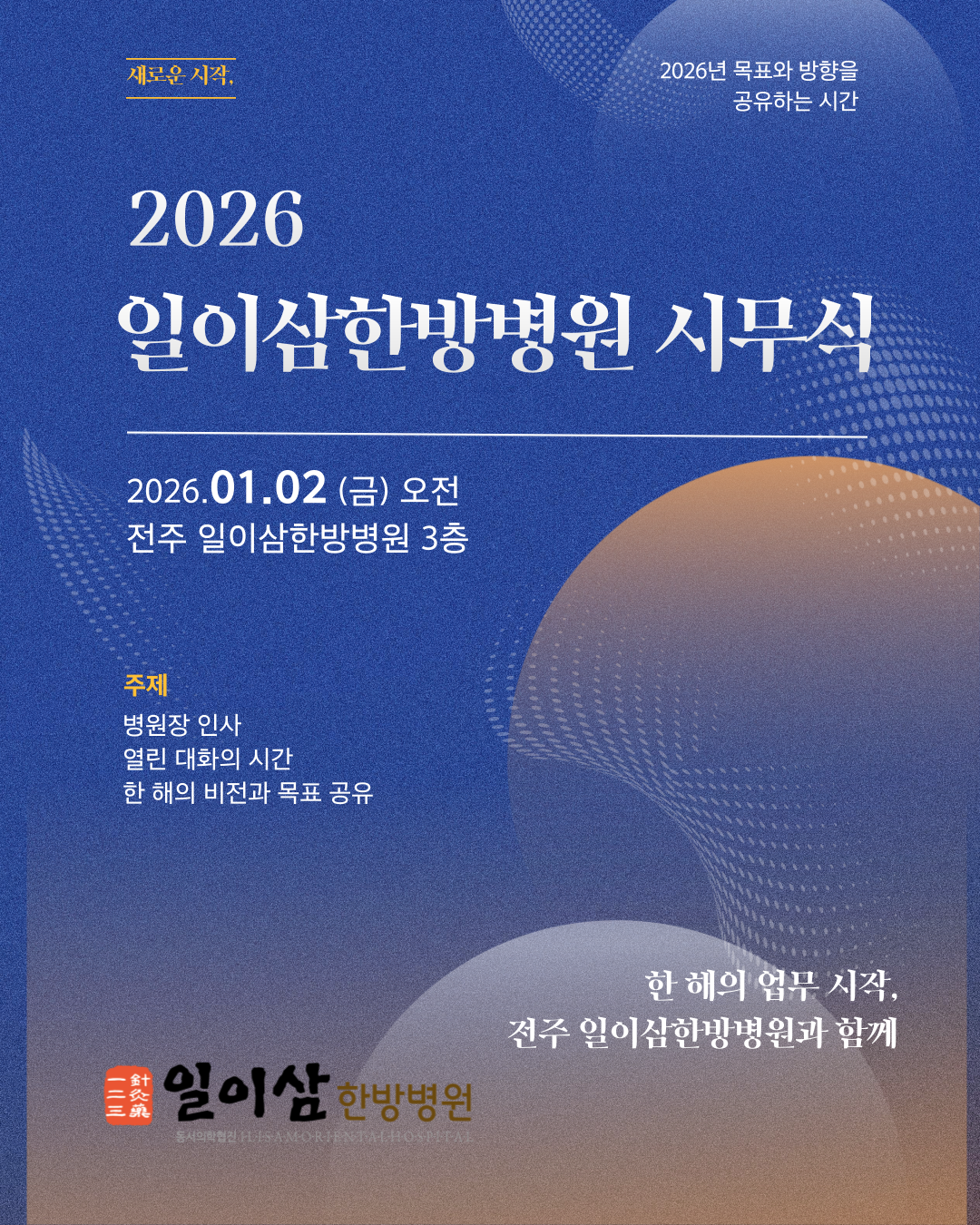 2026년에도 우리 전주 일이삼한방병원은 초심을 잃지 않고, 신뢰를 바탕으로 한 진료와 따뜻한 의료 공간을 만들어가겠습니다.